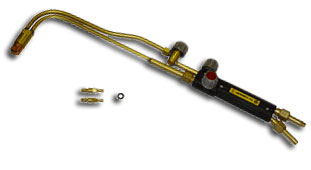 Сварочное оборудование может включать газовый резак. Если на захватной трубке сварочной горелки вместо сварочной насадки смонтирован газовый резак, то с помощью этого прибора может осуществляться как сварка, так и резка стали, причем за один рабочий ход можно разрезать лист толщиной до 300 мм с острыми краями и гладкой поверхностью разреза. Эту технику называют автогенным газовым резанием. Домашний мастер может использовать ее, например, для разрезания сварных деталей и для наложения сварных швов. Газовый резак имеет на мундштуке две насадки. Одна из них, как и сварочный аппарат, испускает смесь газа с кислородом, причем пламенем такой смеси сталь раскаляется до светло- красного цвета. Из второй насадки поступает чистый кислород, и если струя этого кислорода попадает на раскаленную сталь, то сталь сгорает и образуется оксид железа, который кислородная струя выдувает из шва разреза.